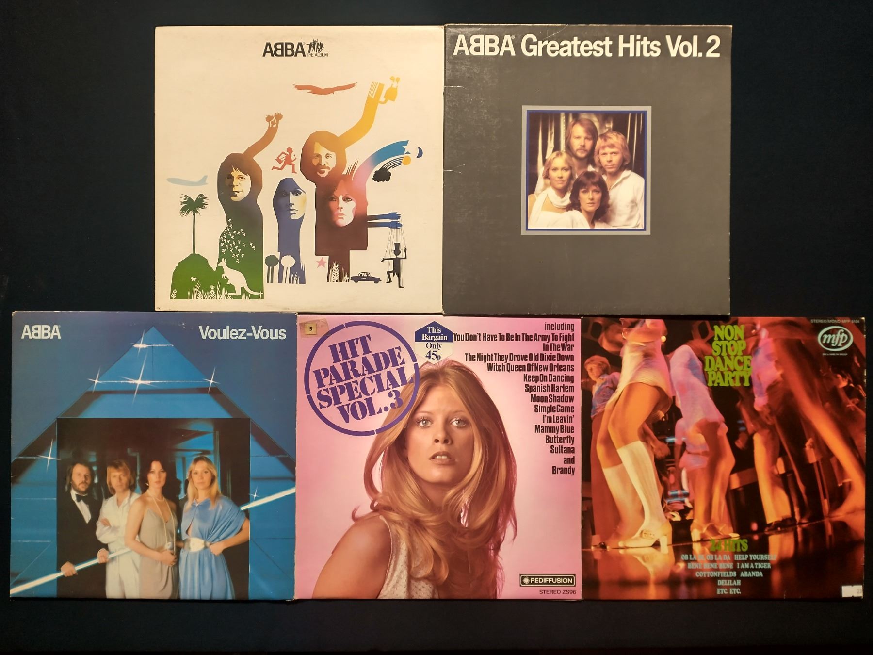5 VINYL RECORD LOT – ABBA & DISCO / POP HITS