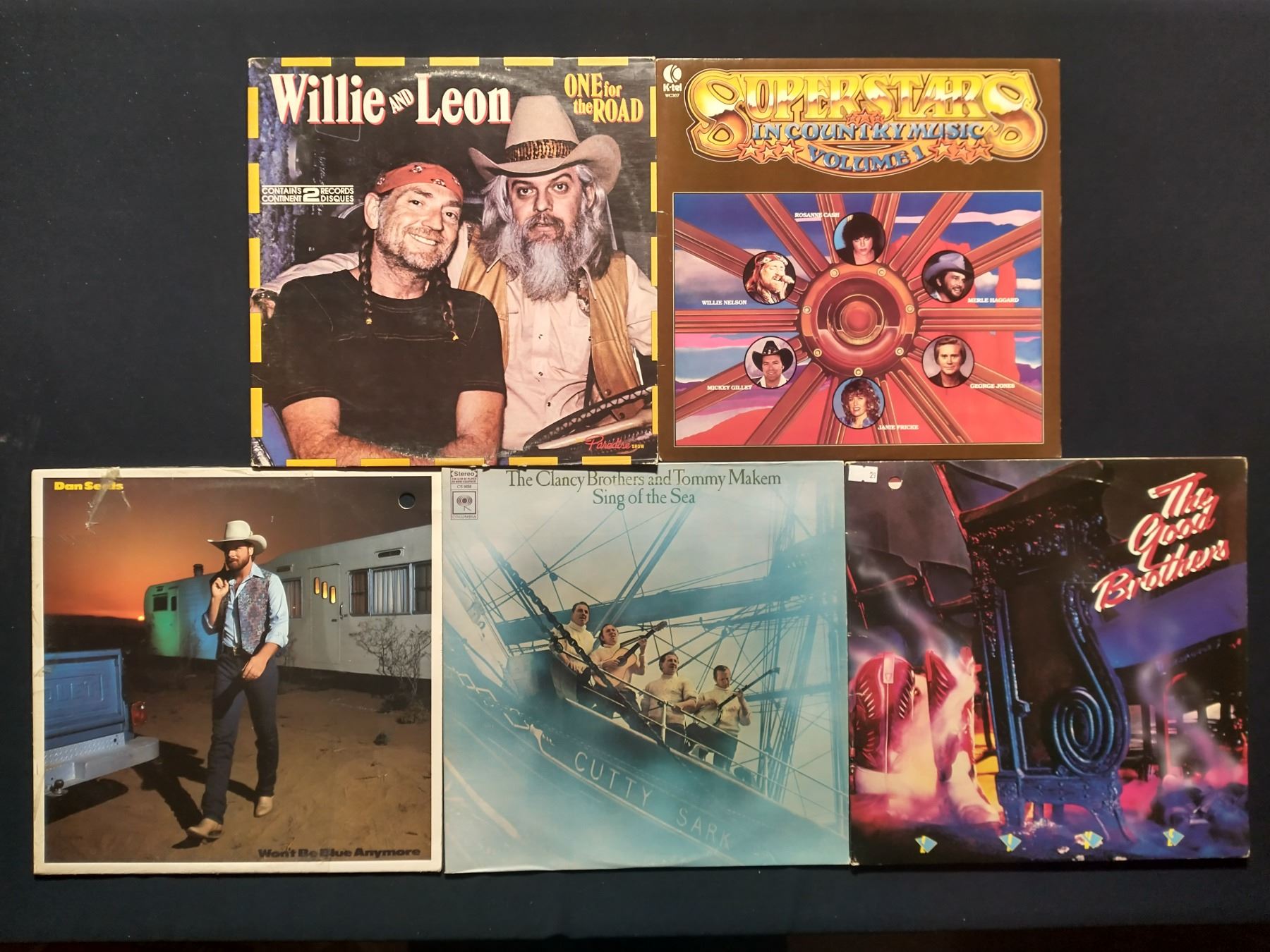 5 VINYL RECORD LOT – OUTLAW & MAINSTREAM COUNTRY / 1970S–1980S