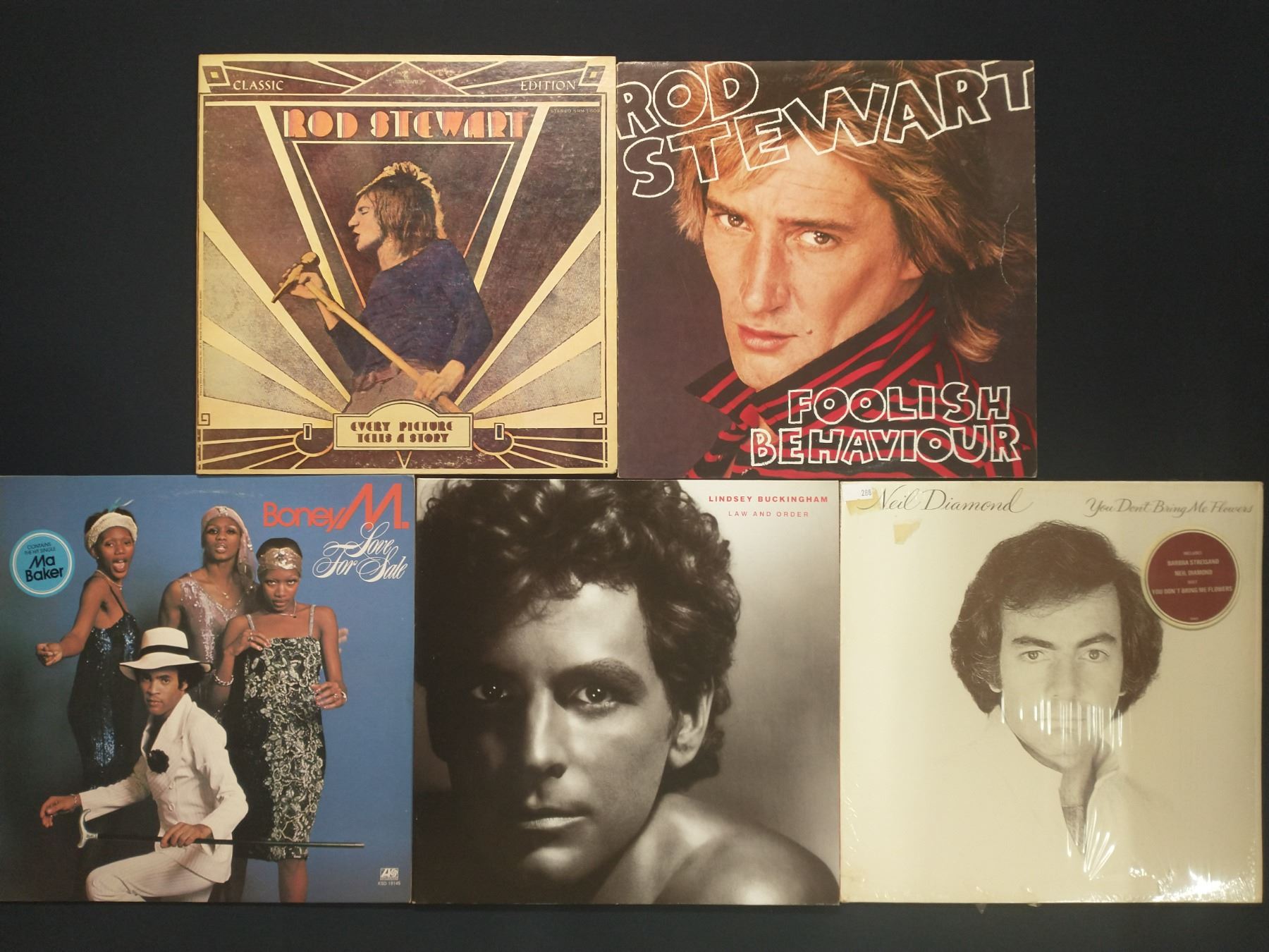 5 VINYL RECORD LOT – ROCK & DISCO / ROD STEWART, BONEY M., NEIL DIAMOND / 1970s–1980s / MAINSTREAM HITS