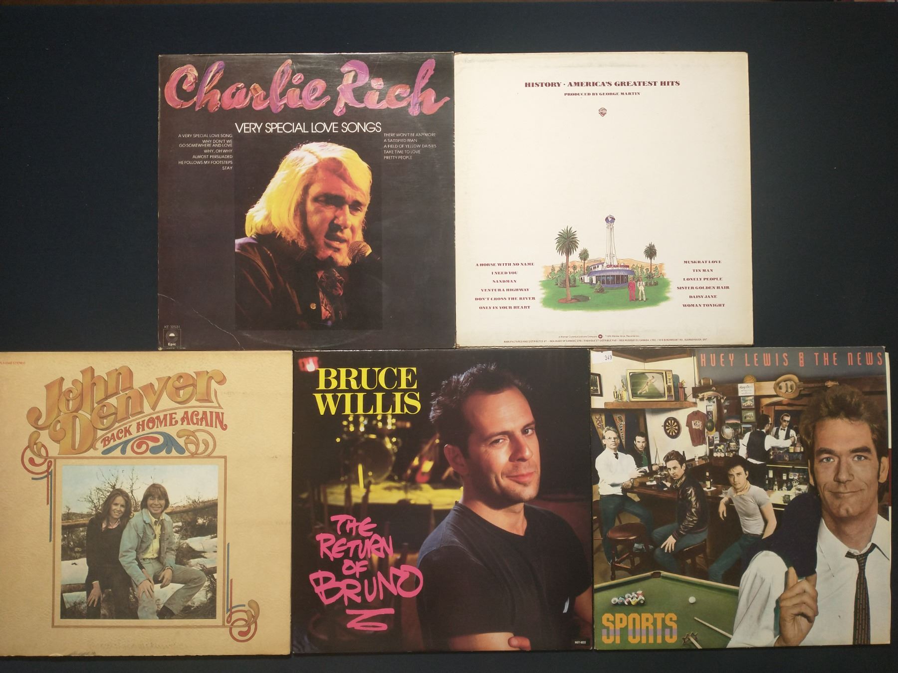 5 VINYL RECORD LOT – ROCK & POP / JOHN DENVER, HUEY LEWIS / 1970s–1980s / CLASSIC & MTV ERA
