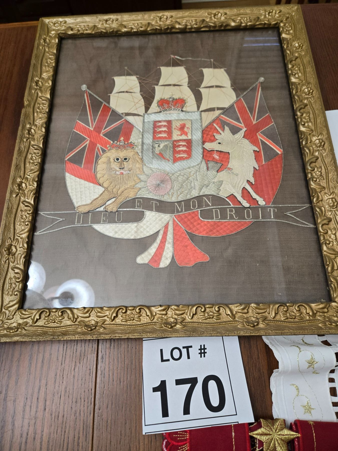 FRAMED BRITISH ROYAL COAT OF ARMS EMBROIDERED PANEL