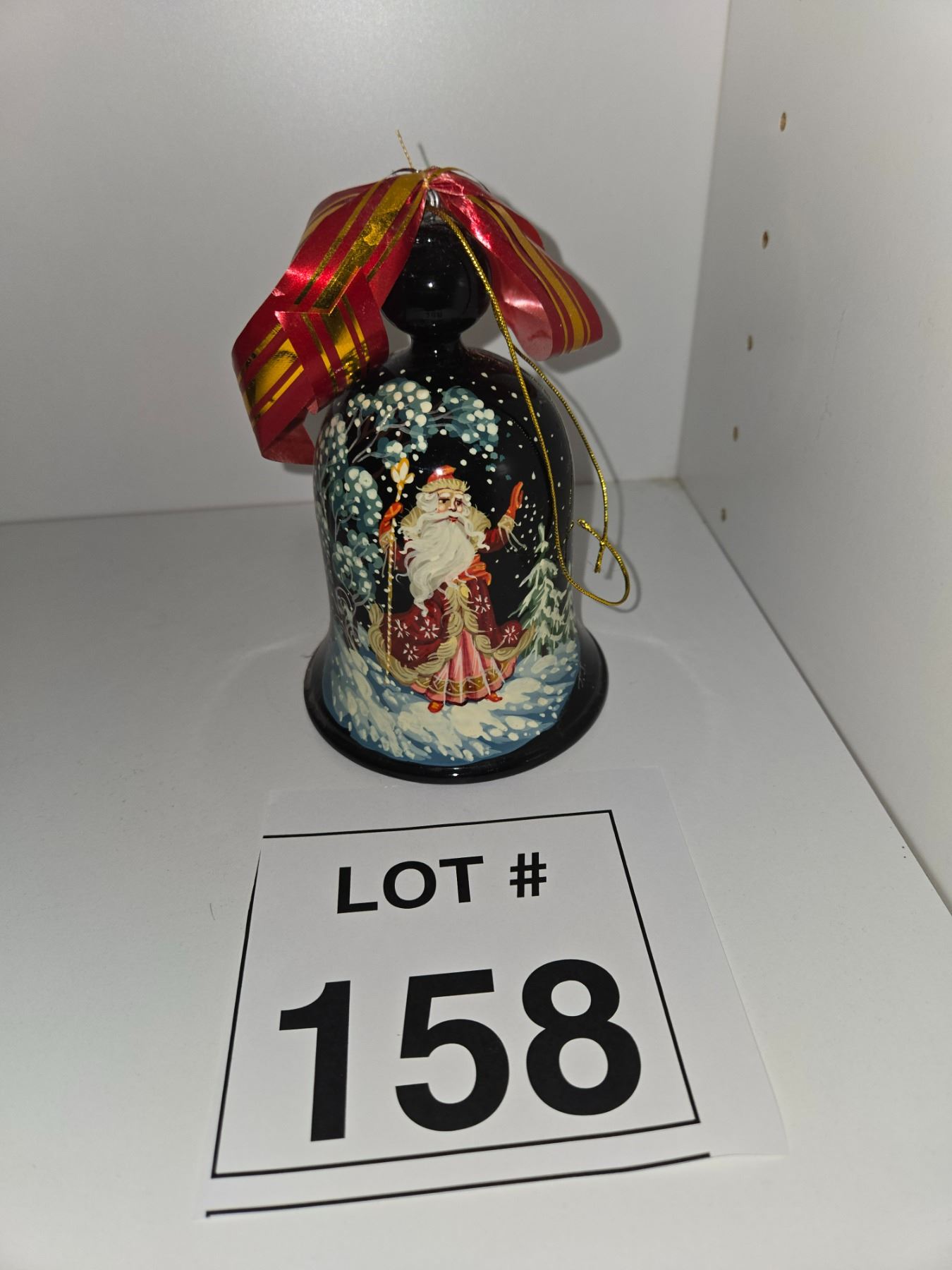 HAND-PAINTED CHRISTMAS SANTA BELL WITH RIBBON
