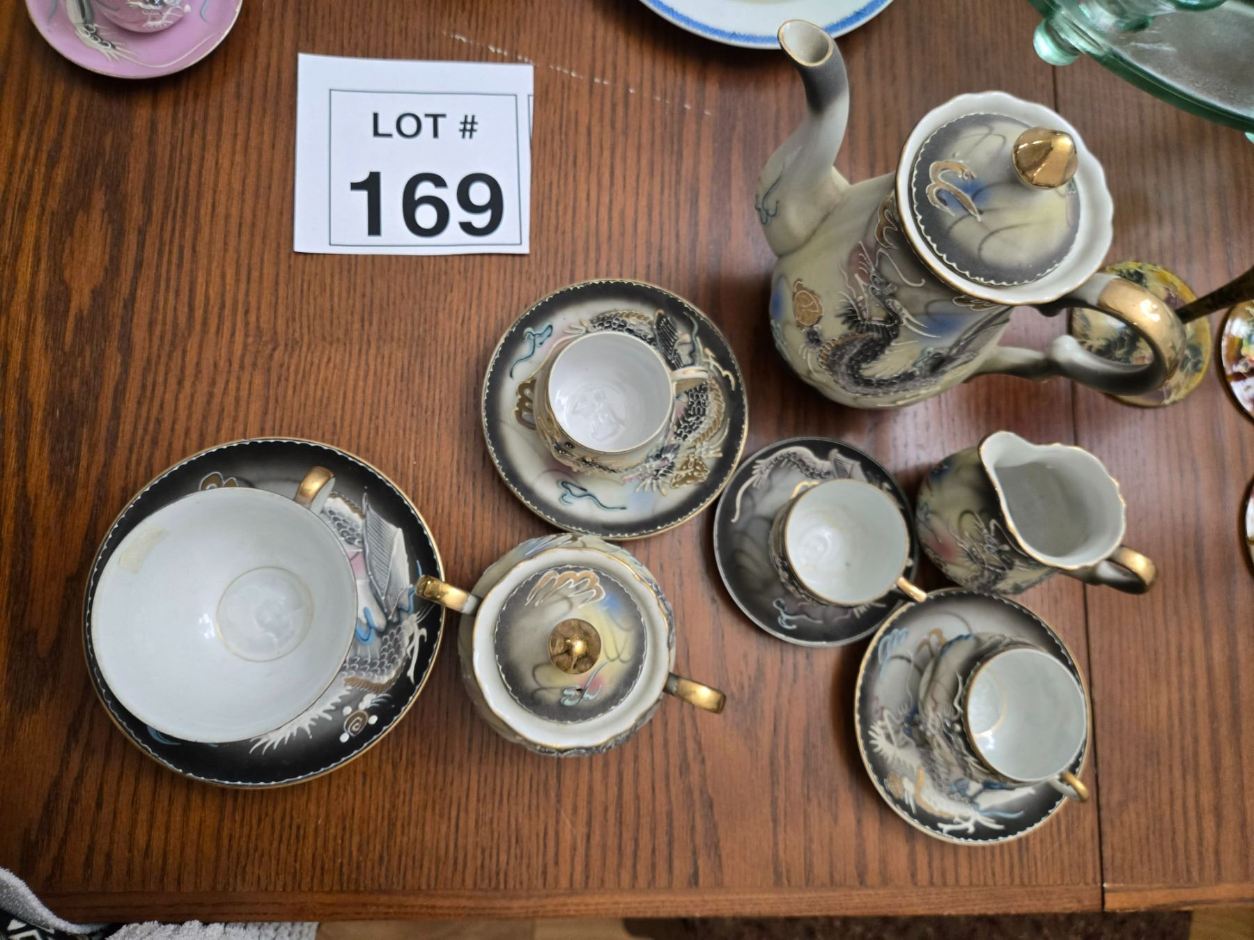 JAPANESE DRAGON MOTIF PORCELAIN TEA SET