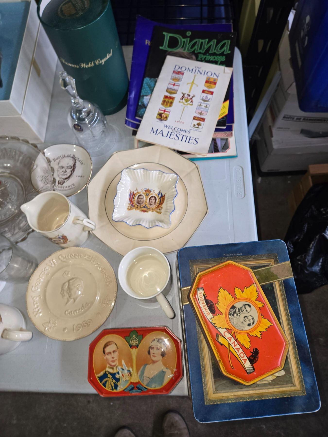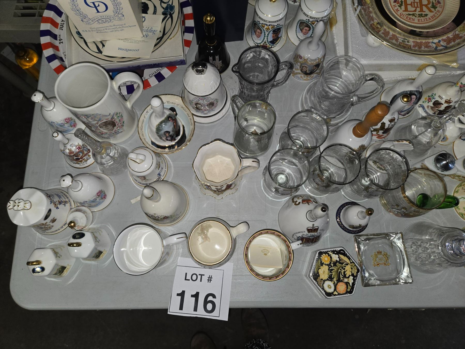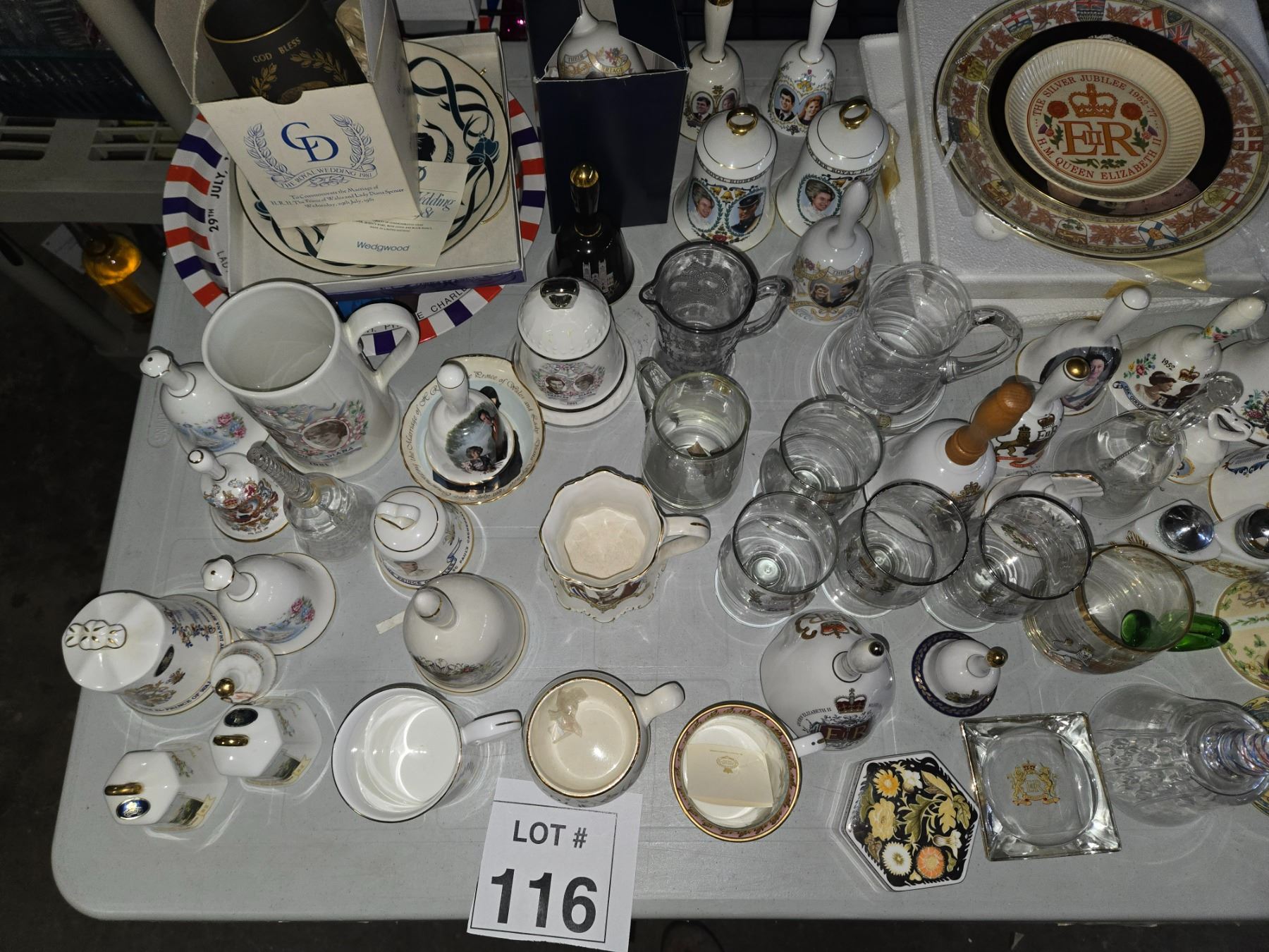 Extensive mixed lot of British royal commemorative items including Queen Elizabeth II coronation (1953), Silver Jubilee (1977), and related events. Includes ceramic bells, mugs, jugs, plates, lidded vessels, tankards, and assorted glassware.