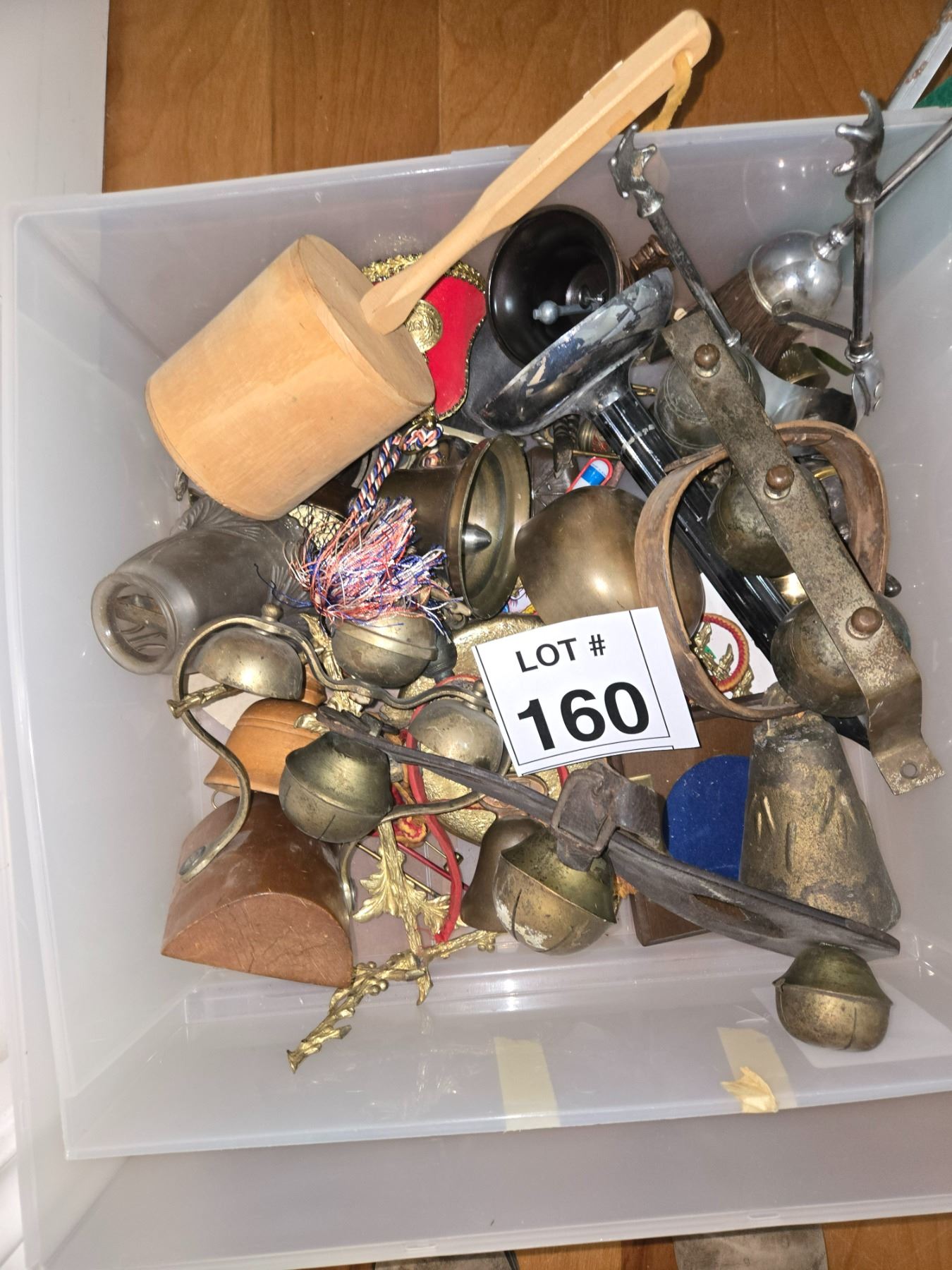 LARGE MIXED LOT OF BELLS – BRASS, WOOD, GLASS & NOVELTY