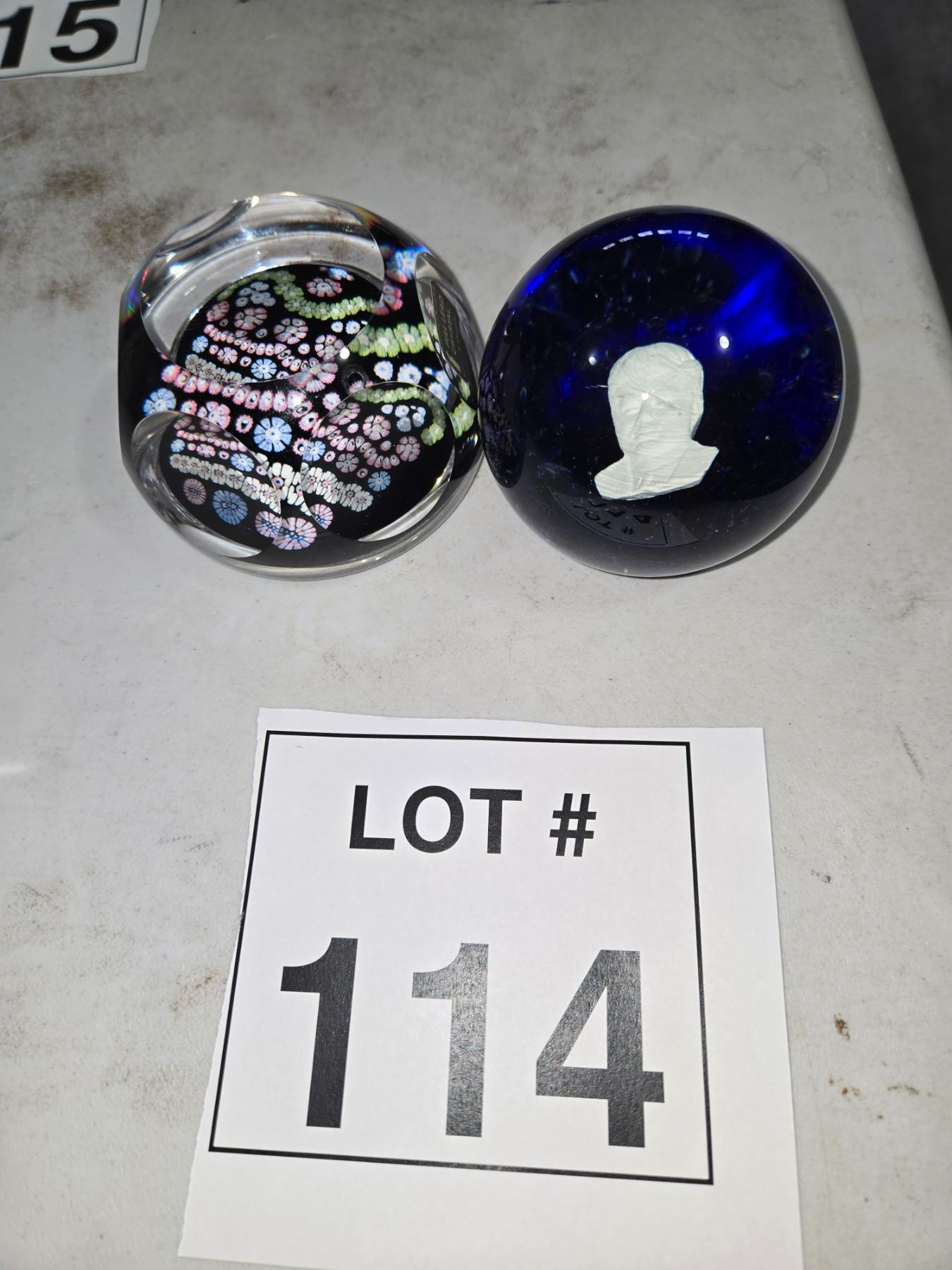 PAIR OF ART GLASS PAPERWEIGHTS INCLUDING MILLEFIORI AND CAMEO STYLE