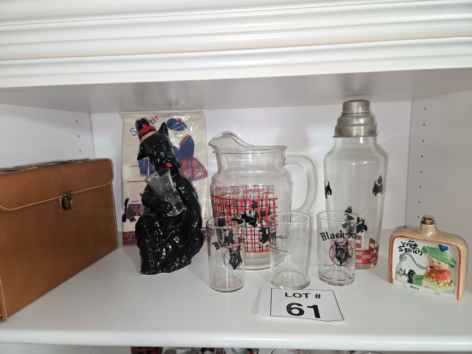 SCOTTISH TERRIER BARWARE, GLASS & CERAMIC NOVELTY COLLECTIBLES LOT
